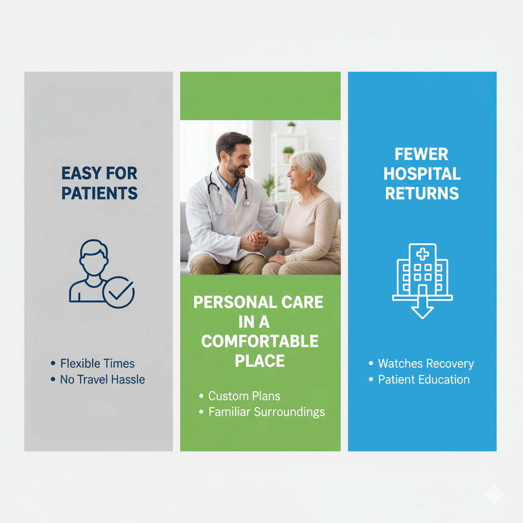 - Cost-Effectiveness: Home visits often cost less than repeated hospital stays. This makes them attractive for both patients and providers.